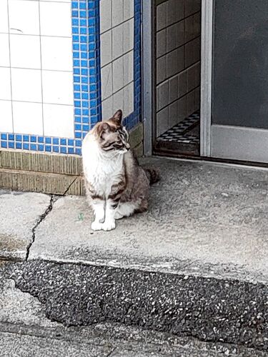 ブログ記事もネタ切れになってきたので、今日は手持ちの写真から「ノラ猫」のものを探してアップします。 1枚目は、散歩途中、クリーニング屋さんの入口にいた猫。クリーニング屋さんの飼い猫かもしれませんが、この路地はノラ猫をよく見かけます。 こちら…